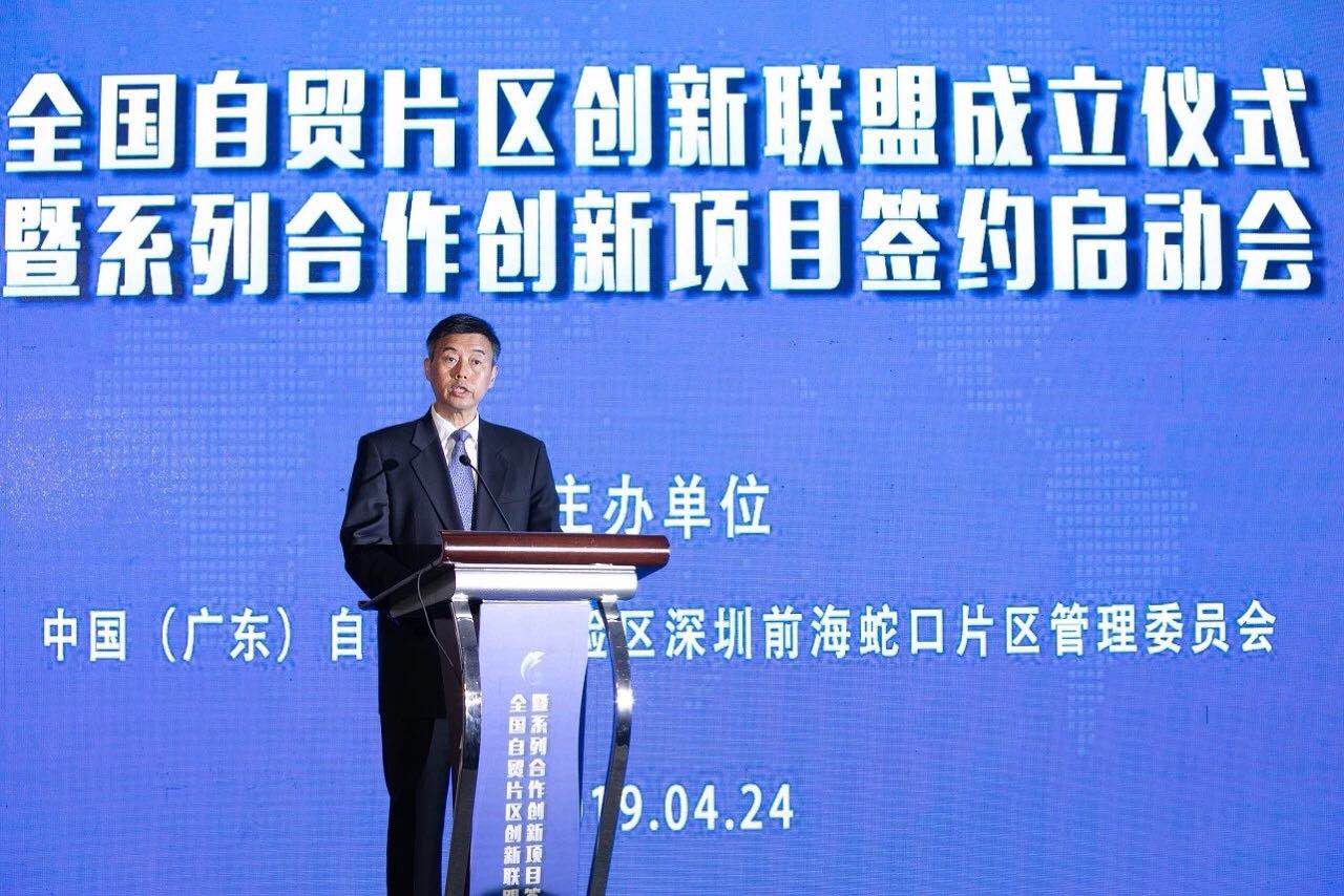 為深入貫徹習(xí)近平總書(shū)記“把自由貿(mào)易試驗(yàn)區(qū)建設(shè)成為新時(shí)代改革開(kāi)放的新高地”重要指示精神,以更大力度推動(dòng)自貿(mào)試驗(yàn)區(qū)改革開(kāi)放創(chuàng)新,4月24日,在習(xí)近平總書(shū)記再次視察深圳前海6個(gè)月、廣東自貿(mào)試驗(yàn)區(qū)深圳前海蛇口片區(qū)成立4周年之際,由前海蛇口自貿(mào)片區(qū)倡議、全國(guó)21個(gè)自貿(mào)片區(qū)或區(qū)域共同發(fā)起的全國(guó)自貿(mào)片區(qū)創(chuàng)新聯(lián)盟在前海成立。