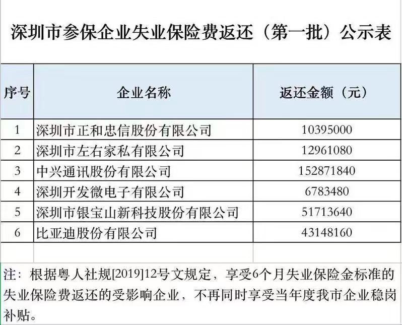 據悉,第一批企業包括比亞迪、中興通訊等企業都獲得了大額的失業保險費用返還,企業應當抓住政策,符合要求的可以獲得一定的補助。