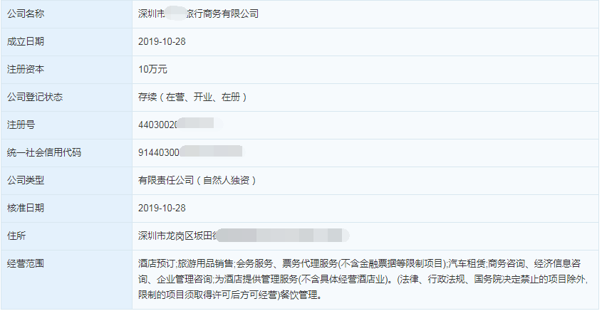以最近注冊的旅行商務公司為例,跟隨小編看一下: