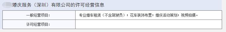 一般經營項目指無需相關部門審批就可以經營的項目,若注冊的時候填報了許可經營項目,在拿營業執照的時候也同時也領取商事主體告知書,提醒到相關部門辦理許可,婚慶公司涉及許可項目還是比較少的,如這家公司,就是做的婚慶相關的業務,經營一目了然。