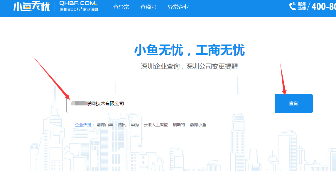 2.進(jìn)入網(wǎng)站首頁搜索你的公司名稱,比如“深圳XX科技有限公司”如下圖: