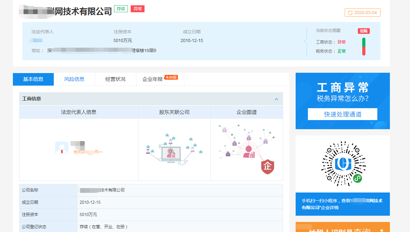 近段時間發(fā)現(xiàn)很多公司都被拉入異常名錄了,有的因?yàn)槎悇?wù)問題,有的因?yàn)槟陥?bào)問題,很多的公司注冊完之后可能沒經(jīng)營了,按理說每個月都得按時報(bào)稅,法人可能認(rèn)為沒有經(jīng)營就不用報(bào)稅,導(dǎo)致自己的公司被拉入異常名錄中。其實(shí)像這種公司挺多的,最重要的是不知道怎么查詢公司是否異常,今天前海百豐小編就給大家推薦一個企業(yè)工商信息查詢系統(tǒng),并普及一下公司異常后有什么影響,公司異常查詢系統(tǒng)(查看自己公司是否被拉入黑名單),以及公司被拉入異常名錄如何解除這三個問題,下面讓小編為您分析: