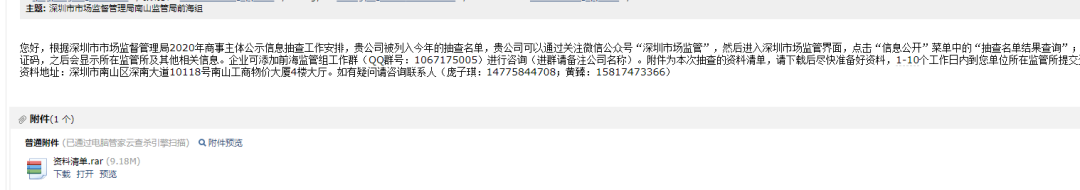 每年,深圳市市場監(jiān)督管理局都會對已注冊登記的商事主體,采取定向抽查和不定向抽查相結(jié)合的方式隨機抽選檢查對象。抽查年度報告信息公示情況和企業(yè)即時信息公示情況,2017到2018的抽查時間都是從8月份開始到11月份結(jié)束,2019年公告是下半年開始抽查,2020年的抽查通告目前還沒有下發(fā),但是不少企業(yè)已經(jīng)收到官方的郵件通知,抽查工作已經(jīng)開展,預(yù)計9月初下發(fā)抽查通知。