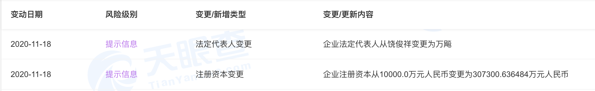 榮耀法定代表人變更為萬飚,注冊資本增長2973%