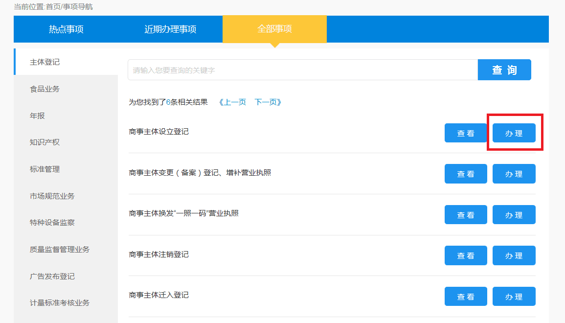 點擊“商事主體設立登記”并按照流程指示進行公司設立申請。
