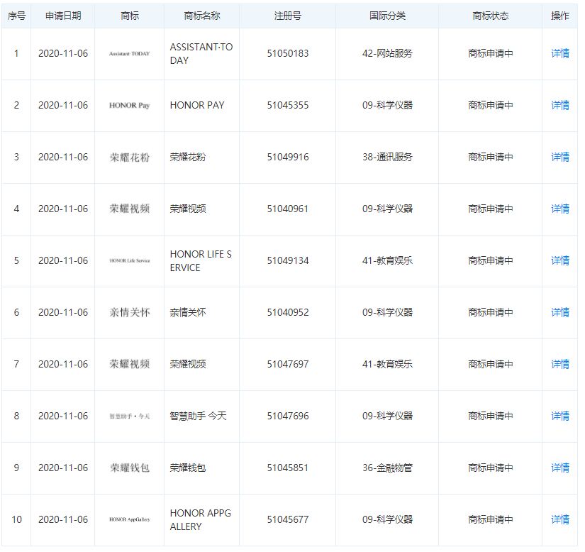 近日,華為技術(shù)有限公司新增多條商標(biāo)信息,商標(biāo)名為“榮耀視頻”“榮耀錢包”,申請(qǐng)日期在11月6日。其中“榮耀視頻”的商標(biāo)國(guó)際分類涉及教育娛樂、科學(xué)儀器;“榮耀錢包”的商標(biāo)國(guó)際分類為金融物管,上述商標(biāo)狀態(tài)均為“商標(biāo)申請(qǐng)中”。