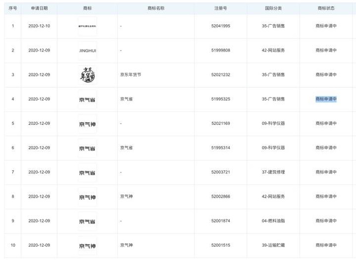 京東關聯公司申請 “京氣省”、“京氣神”商標